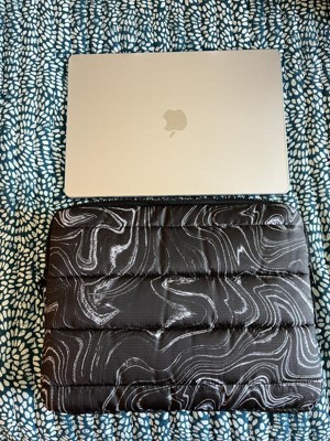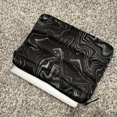 So I've had the opportunity to try this laptop sleeve for a while now and so far it's my favorite. I like how cushiony it is as I don't have to worry about my other stuff crushing my laptop when it's in my backpack. For reference, I use a 13" Macbook Air and it fits no problem. You don't have to worry about accidentally scratching it with the zipper, as there is plenty of room at the top. The material is easy to spot clean just in case, and the marble effect adds an edgy impact. Overall, would make a great cozy laptop sleeve.