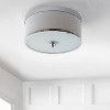A simple and modern piece, this flush mount is versatile and small in scale, making it suitable for low-ceilings. Its LED-compatibility makes it convenient and energy-efficient. The chrome bands add a versatile and chic finish. Finished in chrome, the metal body would suit any color palette. As this fixture must be hardwired, we recommend a professional electrician manage installation. Eco-friendly 4W LED bulb included. Takes two bulbs and compatible with any 9W LED or 40W TYPE "B" or 13W CFL. UL Listed. Fixture can be dimmable with dimmable bulb (not included) and Electric Low Voltage dimmer (sold separately). Before cleaning any lamp shade or fixture, disconnect the power source. Wipe with a soft, dry cloth. Avoid the use of chemicals and household cleaners as they may damage the finish.