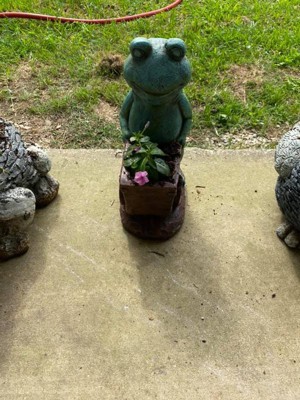[This review was collected as part of a promotion.] He is so adorable. I love frogs. His name is now Fred. Lol he’s very steady. He’s a really nice size. He goes great with my other garden planters. The flowers my daughter picked out go great with him.