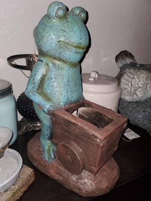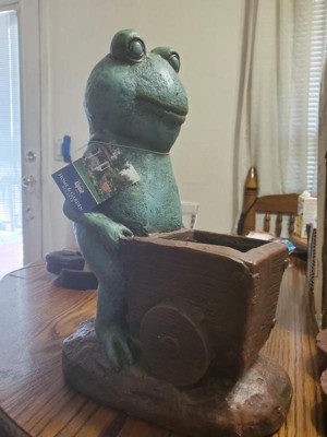 15" Magnesium Oxide Frog Pushing Wagon Statue Planter - Alpine Corporation: Outdoor Animal Figurine, Nature Theme, Tabletop Decor