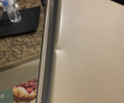 My cookie sheet arrived dented in three places. It was shipped in a box twice the size of the item, so maybe the shipping box played a role in why it was so beat up. I’m giving it ⭐️⭐️⭐️⭐️⭐️ anyway because it’s a NICE product! I returned it immediately because of the dents, but I’m nervous about ordering it online again.
