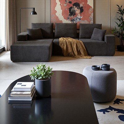 150'' Corduroy Upholstery U-Shaped Sectional Sofa with 2 Ottomans, Removable Console with Storage, USB & Wireless Charging, Bluetooth Speaker