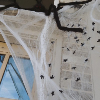 Add these spiders to the stretchy cobweb to make a spooky Halloween doorway