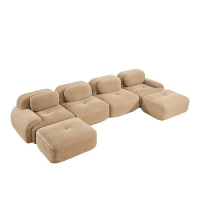 157" Corduroy Modular L-Shaped Sectional Sofa with Ottoman