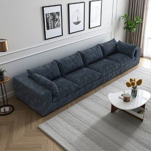 158" Corduroy Cloud Straight Sectional Sofa, Double-Layer Cushions