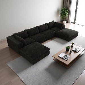 158" Corduroy Cloud U-Shaped Sectional Sofa, Double-Layer Cushions