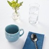 A: Hi Tamara - Thank you for reaching out to us with your query about the 15oz Stoneware Westfield Mug Blue - Threshold. The dimensions of the mug are 3.38 Inches (H) x 3.75 Inches (W) and can hold up to 15 Ounces. I hope this information was helpful. Happy Shopping! - Josh