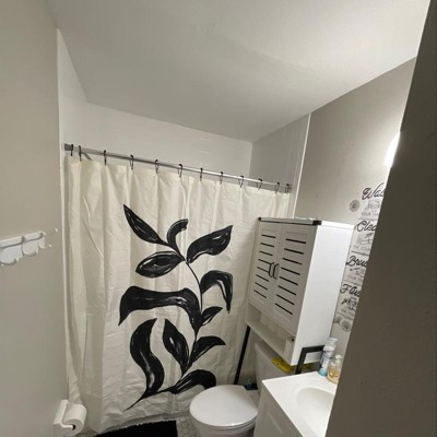 A: The shower curtain is made from plastic, providing durability and easy maintenance.