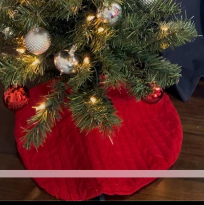 Bring a touch of cozy sophistication to your tree with this 16-Inch Cable-Knit Mini Christmas Tree Skirt from Wondershop™. This acrylic Christmas tree skirt showcases a classic cable-knit pattern in a solid shade and a 16-inch round silhouette that easily drapes around the base of your tree and secures with hook-and-loop fastening. Decorative and functional, this fabric tree skirt provides a lovely foundation for your gifts while concealing the tree stand and catching falling ornaments or pine needles.