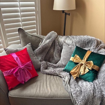 This 16-Inch Christmas Red Square Pillow with Hot Pink Bow from Wondershop™ makes a delightful addition to your holiday setup. This square pillow is designed in a red hue with a pink bow for standout style. Made of polyester fabric, you can toss this pillow on your sofa or armchair with other seasonal pillows for a coordinated look.