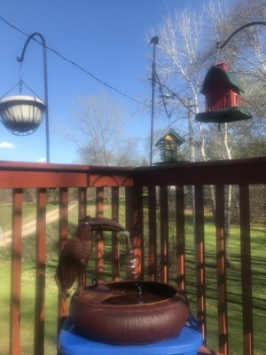 [This review was collected as part of a promotion.] This is the perfect addition to our patio flower garden. The Toucan’s beak fills with water and then flows out into the reservoir making a very peaceful soothing sound. Then fills up again and repeats. Everyone who sees it makes comments about how unique it is. We love it. Highly recommended.