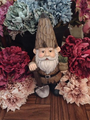 16" Magnesium Oxide Indoor/Outdoor Garden Gnome with Shovel and Plant Statue Brown - Alpine Corporation