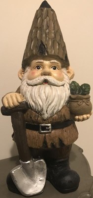 [This review was collected as part of a promotion.] I collect garden gnomes and this guy from the Alpine Corporation is the perfect addition to my collection. He is so adorable and he stands 16" high, he holds a shovel and a plant basket. I love his facial expression, his colors and especially his little hat. He's just so adorable and you can use him inside or outside. Great Product from Alpine Corporation.