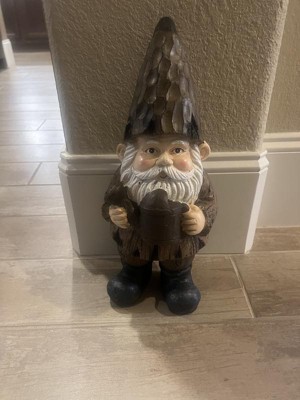 16" Magnesium Oxide Indoor/Outdoor Garden Gnome with Watering Can Statue Brown - Alpine Corporation