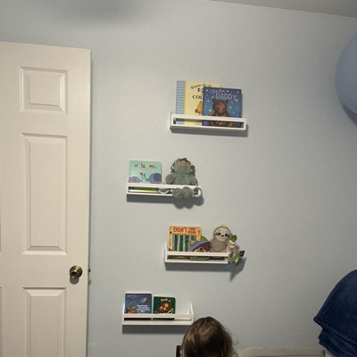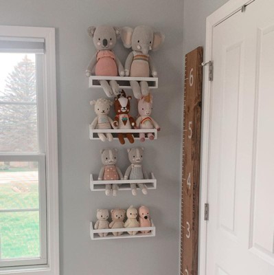 - White wall shelf is perfect for a nursery or kids room
