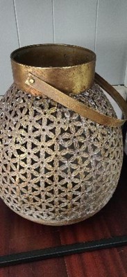 beautiful rustic gold lantern. although it came a bit dented on the side, it won't be noticeable once turned and it can be fixed. worth the buy when it's on sale! love the gold