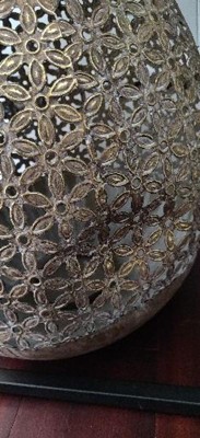 16" x 13" Round Antique Metal Candle Holder with Floral Pattern White/Gold - Olivia & May: Eclectic Tabletop Decor