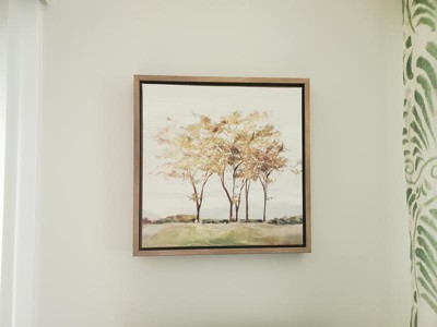 16" x 16" Golden Acre Wood by Isabelle Z Framed Canvas Wall Art - Amanti Art: Serene Meadow & River Trees Scene