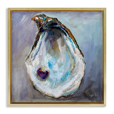 FRAME DETAILS: The canvas is framed in the Sylvie Gold frame, which is a modern, float frame with gold coloring, burnished detailing and dramatic depth. The frame measures 1 in. wide and stands 2 in. off the wall. The canvas appears as if it is floating in the frame because it has a narrow gap between the edge of the canvas and the frame. The overall size of this framed canvas print measures 16 in. W x 16 in. H.