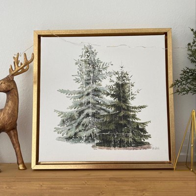 16" x 16" Vintage Wooded Holiday Trees in Snow by Katie Pertiet Framed Canvas Wall Art - Amanti Art: Seasonal Decor, Lithograph Print