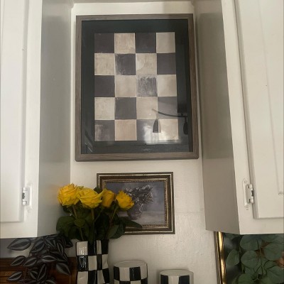 The 16" x 20" Checkerboard Framed Wall Art by Threshold™ designed with Studio McGee is a digital artwork that features a geometric shape to enhance the visual intrigue of your walls. The checkered patterned image is presented in neutral tones, complementing various background colors in your space. The mat brown frame can be effortlessly hung on walls and doors using the saw tooth mount. It also comes with a glass case for a polished finish. Its vertical canvas design allows for placement on tabletops. Add a touch of geometric allure to your room through this checkerboard framed canvas by Threshold, a collaborative creation with Studio McGee.