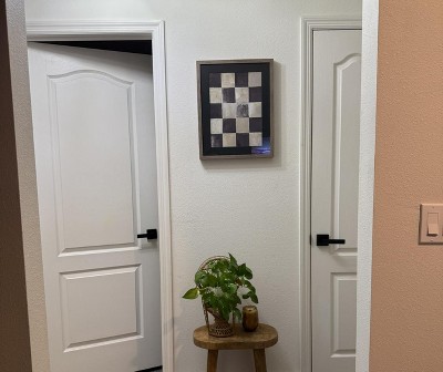 A: Yes, the wall art can be hung on doors using the sawtooth mount.