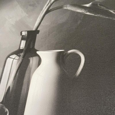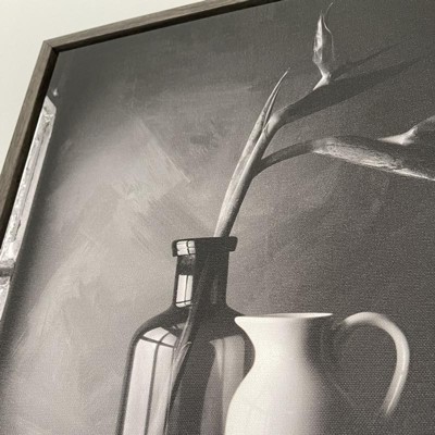 ART DESCRIPTION: A quietly striking contemporary still life, this inviting black-and-white print captures a quiet, simple scene. Muted sunlight from a small kitchen window illuminates a glass vase carrying a single bird-of-paradise flower, a white pottery carafe and a small bowl of plums, carefully arranged. This Amanti Art canvas art print was created by Luiz Laercio and printed by Amanti Art in Madison WI. The canvas is stretched by hand and finished with a float frame. Individually made using traditional custom framing techniques, it has the quality you would expect from your local frame shop. Because of our attention to detail and focus on artistry, architects, interior designers, and homeowners alike choose this framed canvas artwork to create beautiful living spaces.