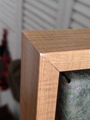 - FRAME DETAILS: The canvas is framed in the Sylvie Maple frame, which is a modern, float frame with natural maple woodgrain coloring and dramatic depth. The frame measures 1 in. wide and stands 2 in. off the wall. The canvas appears as if it is floating in the frame because it has a narrow gap between the edge of the canvas and the frame. The overall size of this framed canvas print measures 16 in. W x 23 in. H.