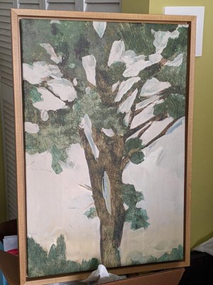 ART DESCRIPTION: The strength and maturity of a tall tree create the focal point in this semi-realistic image. Clusters of green leaves tip sturdy branches as daylight dapples through in the breaks. A line of treetops forms a skyline along the distant landscape. This Amanti Art canvas art print was created by PI Gallerie and printed by Amanti Art in Madison WI. The canvas is stretched by hand and finished with a float frame. Individually made using traditional custom framing techniques, it has the quality you would expect from your local frame shop. Because of our attention to detail and focus on artistry, architects, interior designers, and homeowners alike choose this framed canvas artwork to create beautiful living spaces.