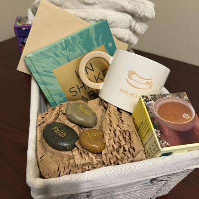 Used this basket for a sympathy gift for a friend. We purchased the throw , tea and mug all at Target