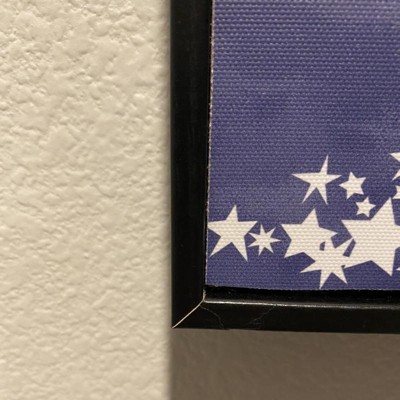 This picture looks cute from a distance, but it’s really disappointing up close. The frame is coming apart at the corners, the black coating on it is already starting to peel, and the canvas is cut canvas, not wrapped, so you can see it fraying inside the frame. Mine also has big globs of glue that you can see between the picture and the edge of the frame. And on top of everything else, it doesn’t even come with any sort of hanging hardware on the back, just a little picture that tells you that you can hang it on a nail, but there is no lip or edge on the frame to make it secure at all.