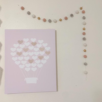 16"x1.5"x20" White Gold Pink Heart Hot Air Balloon Stretched Canvas Kids' Wall Art - Stupell Industries: Modern Pastel Lithograph