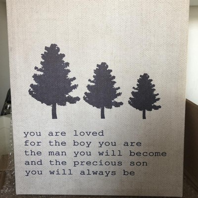 16"x1.5"x20" You Are Loved Son Trees Stretched Canvas Kids' Wall Art - Stupell Industries: Modern Multicolor Quote Art