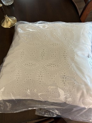 - The Laura Ashley Annabella Decorative Throw Pillow Features A Crochet Panel On A White Ground
