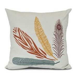 16"x16" Feather Study Floral Printed Square Throw Pillow - e by design: Indoor Polyester Fill, Farmhouse Decor Style