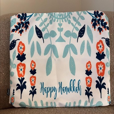 16"x16" Marni Floral Hanukkah Menorah Square Throw Pillow White/Blue: Indoor Decorative Cushion - Deny Designs