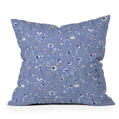 16"x16" Ninola Design Feathers and Flowers Romance Aqua Floral Square Throw Pillow Gold/Blue - Deny Designs