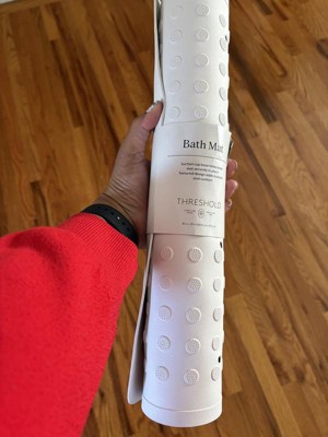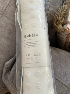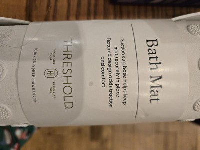 Spruce up your bathroom decor with this XL Bath Mat from Threshold™. This rectangular bath mat boasts a raised embossed pattern with suction cups on the back to create a secure grip on the shower surface. Easy to integrate into any bath decor style or color scheme, the plastic bath mat can be spot or wiped cleaned for ease of maintenance.