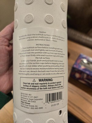 This bath mat came just in time we were in need of an another bath mat. I love how long it is it almost filled up the whole bottom of the tub. Nice nice grip I haven’t slipped with it. I would definitely recommend this.
