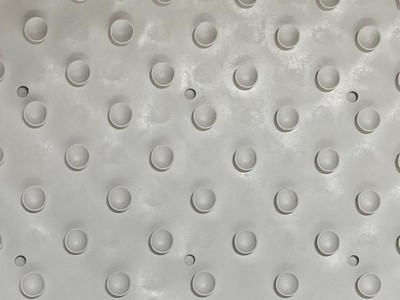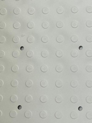 A: The bath mat's off-white color and embossed design easily integrate into any bathroom style.