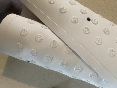 Very soft and comfortable bath mat. Easy to wipe down and comfortable to stand on. No issues with slipping or the the bath mat moving once down on the bathtub. Soft to the touch and great drainage. I would recommend this mat.