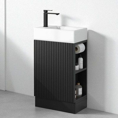 Maximize your space with this 16"" freestanding bathroom vanity, thoughtfully designed for compact bathrooms, powder rooms, and guest spaces. Featuring a sleek integrated sink and clean lines, this vanity offers both functionality and modern aesthetics. The built-in storage cabinet helps keep your essentials organized while maintaining a clutter-free countertop. Built from high-quality materials for durability, this vanity is a practical solution for small spaces without compromising on style.