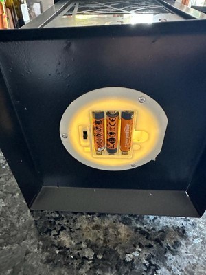 [This review was collected as part of a promotion.] This is such a fun Halloween decoration. First off I love that it’s battery powered because while I like the idea of a candle I never want anything actually burning. Three AAA batteries and this thing is good to go. It seems to be made of a light metal which I would caution that it seems to dent rather easily. Unfortunately, it was knocked into the corner, and it received a dent almost right away. The design is super adorable, and I love the contrasting images on the sides. The light is pretty vibrant and makes a nice addition to any inside or outside decor. This was received for free in exchange for review.