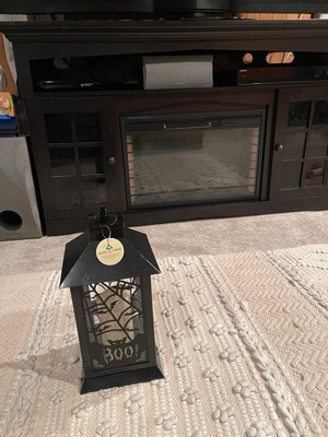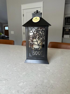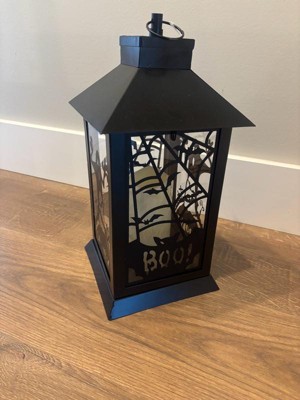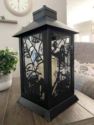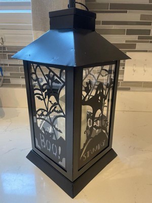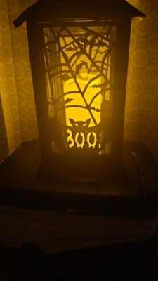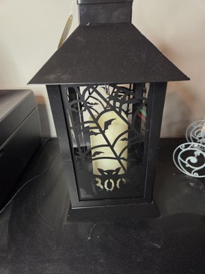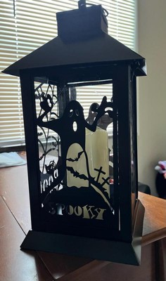 [This review was collected as part of a promotion.] This Black Halloween Ghost Lantern is very cute and it fits my indoors Halloween theme well. It’s a soft white lighting lantern with cute metal bat detailing. Great addition to my collection.