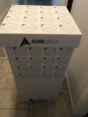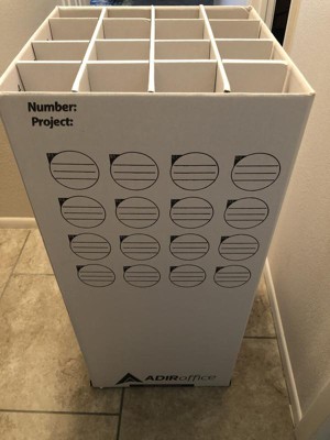 Organize rolled documents with the Adir Corrugated Cardboard Upright Storage Cabinet. Designed to hold 16 rolled files, including blueprints, plans, maps, and artwork, each 3.75" slot keeps items tidy and protected. Sturdy white corrugated cardboard with reinforced bottom and dividers ensures durability, while labeling grids on the front and top make identification easy. Compact, stackable, and economical, this storage cabinet saves space, time, and money in offices or studios.