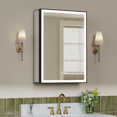 16"x24" Belle Bathroom Medicine Cabinet with Beveled Mirror, Recessed or Wall Mount, Adjustable Tempered Glass Shelves BlackL