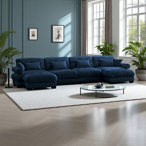 - Matching Ottomans Included This sofa comes with matching movable ottomans in the same velvet fabric, offering ultimate flexibility. Easily rearrange them to form a sectional, U-shaped sofa, or use them as standalone footrests or extra seating options.