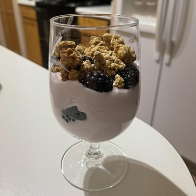 I received these glass goblets in exchange for an honest product review. I liked these goblet glasses because not only are they cute, but they are versatile. I used these for drinks (i.e., water & margarita on the rocks), but I also used it for a dessert (pictured below). The material feels sturdy, I would totally recommend these to a friend!
