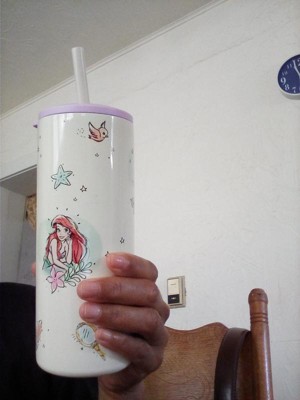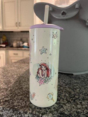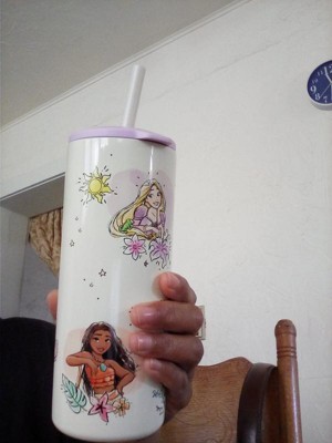 This fun Disney Princess straw tumbler makes hydration easy! Vacuum insulation prevents condensation from forming on the outside of the cup, in addition to keeping drinks cold for up to 10 hours. The lid and straw help prevent splashes and spills while keeping drinks accessible, and the 16-ounce tumbler fits in most car cup holders, so you can easily take beverages on the go. Durable and top rack dishwasher safe, this tumbler is made with 18/8, food-grade stainless steel and features colorful artwork of Ariel, Belle, Cinderella, Moana, and Rapunzel to make hydration a blast.