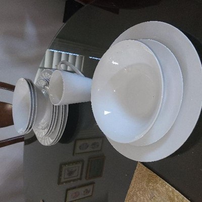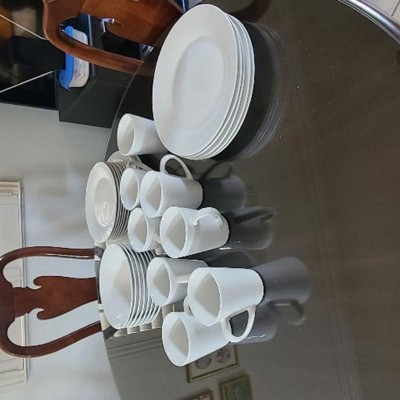 Excited to have and use this set. Purchased 3 sets of the service for 4. All arrived quickly and in good condition. Was looking for a white set that included both mugs and nesting bowls that stack to best utilize cupboard storage - that combination is not easily found. With clean simple lines and true white color, these will be a great base for all seasons and will be able to dress for any occassion with linens and/or other speciality pieces.